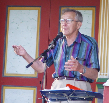 Ragnar Dahlsten ledde allsång vid Hede Hembygdsgård första dagen på 2006 års byvecka.