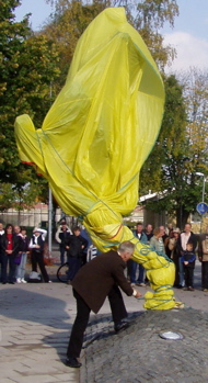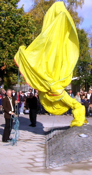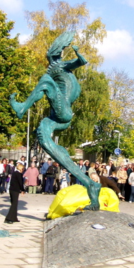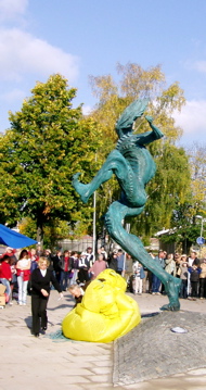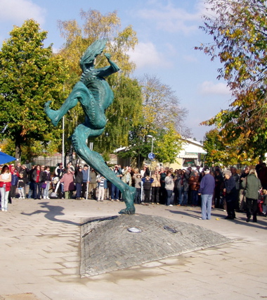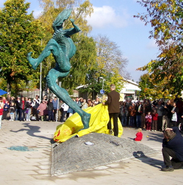 Vid lunchtid lördagen den 8 oktober 2005 avtäckte konstnären Richard Brixel sin skulptur Den lycklig Arbogafilosofen. |