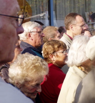 | Osedvanligt mycket folk hade samlats vid varuhusen för att få vara med om avtäckningen. |