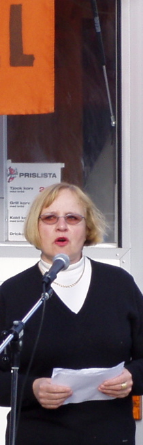 Liisa Petterson, s, ordförande i Arbogas fritids- och kulturnämnd, invigningstalade på Entrétroget i Arboga lördagen den 8 oktober 2005.